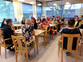 ![]() Palvelukeskus Åvikin henkilökuntaa oli sankoin joukoin paikalla. |